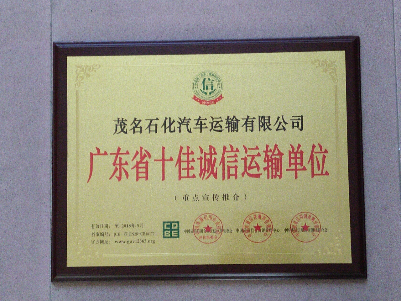 > 廣東省十佳誠信運輸單位